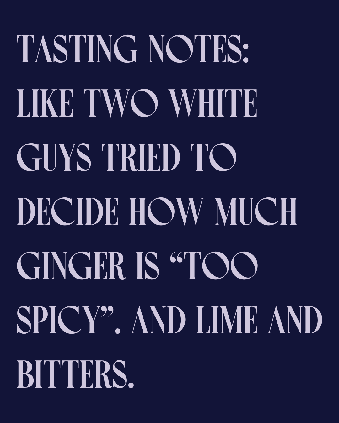 Tasting Notes: Ginger Juice, Lime, & Aromatic Bitters. Slightly sweet with a back-end ginger burn.